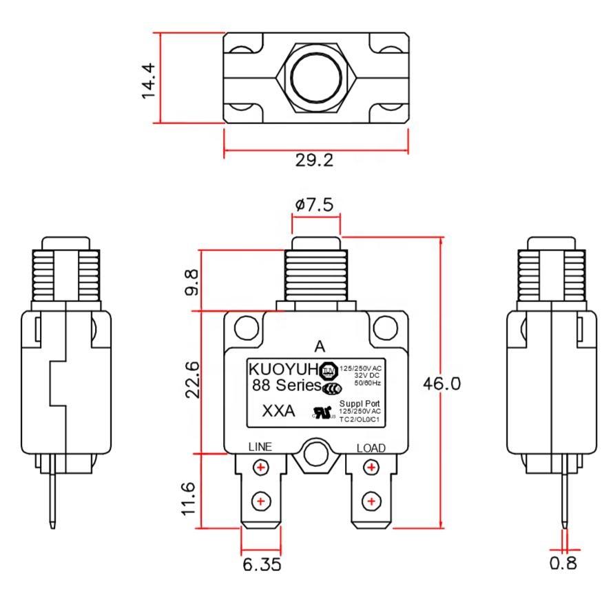 88 Series Push-to-Reset circuit breaker is a unipolar, single-push reset thermal protector product, used to protect motor equipment. Simple in design, precise in action. It is a reliable circuit protection device.