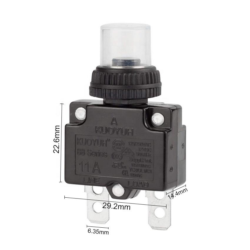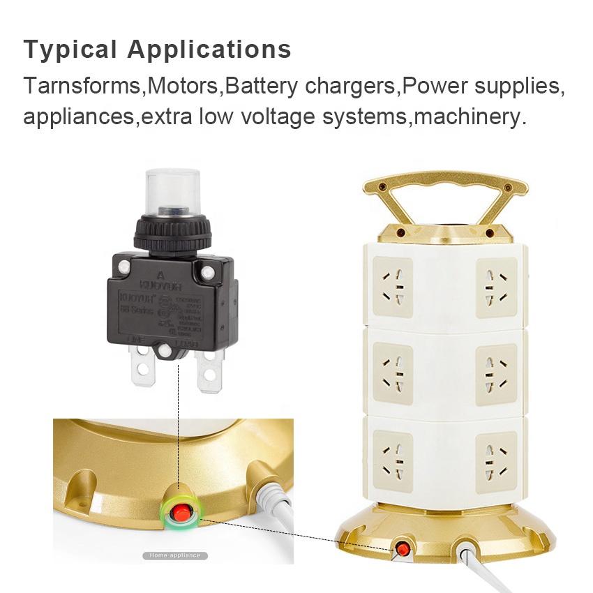 88 Series is 3-30 amps, Suitable for power strips, uninterruptible power system(UPS), extension cords, Audio amplifier, blender, meat grinder, marine panel, water pump, generator, motor protection, refrigeration equipment, etc.