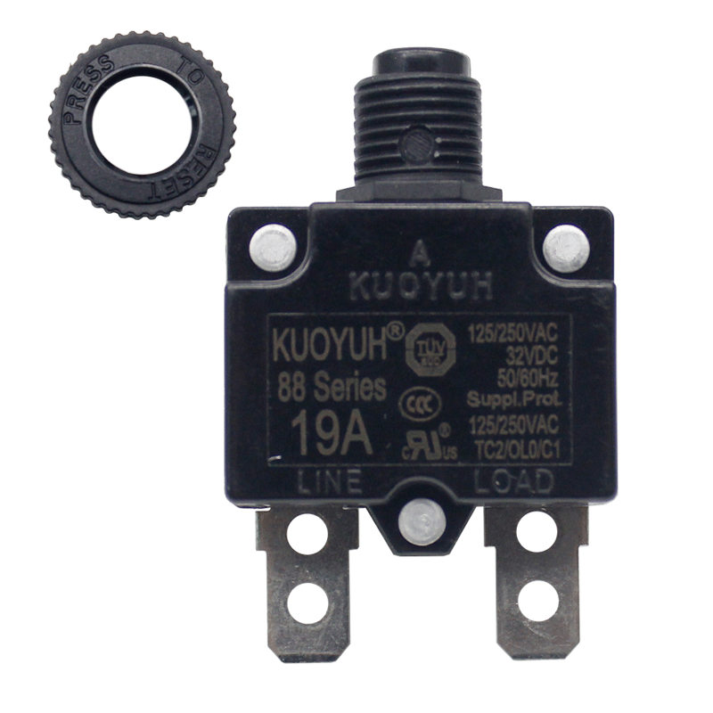 KUOYUH 19 Amp 88 Series Quick Connect Terminals Push-To-Reset Thermal Circuit Breaker