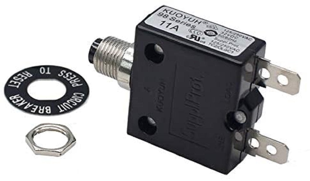 KUOYUH 11 Amp 98 Series Quick Connect Terminals Push-To-Reset Thermal Circuit Breaker