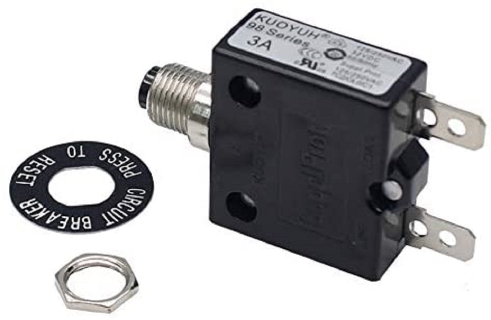 KUOYUH 3 Amp 98 Series Quick Connect Terminals Push-To-Reset Thermal Circuit Breaker