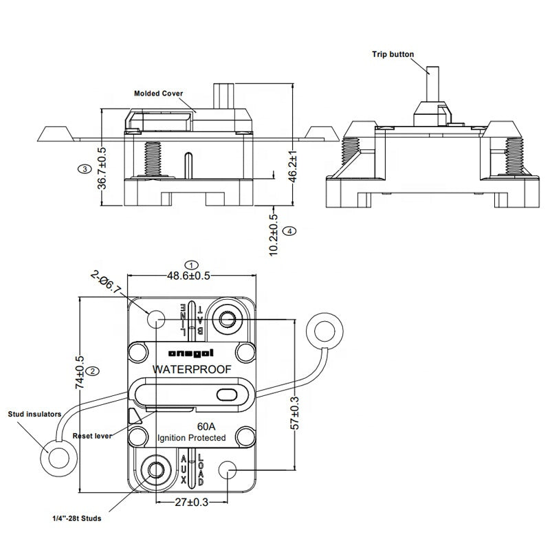 KUOYUH 60A 16F Series WATERPROOF Ignition Protected Circuit Breaker 48/32/24VDC