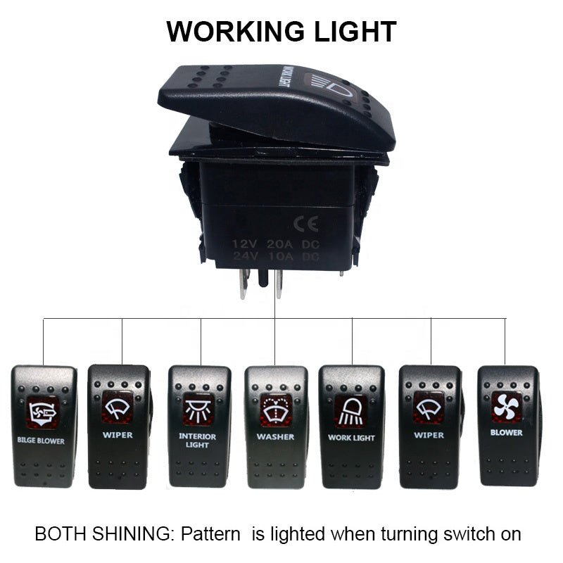 12v 20 Amp Waterproof Red LED On/off Boat Marine SPST