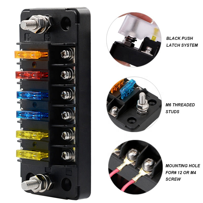 6 Way Fuse Box Blade Fuse Blocks with LED Warning Indicator for Car Boat Marine
